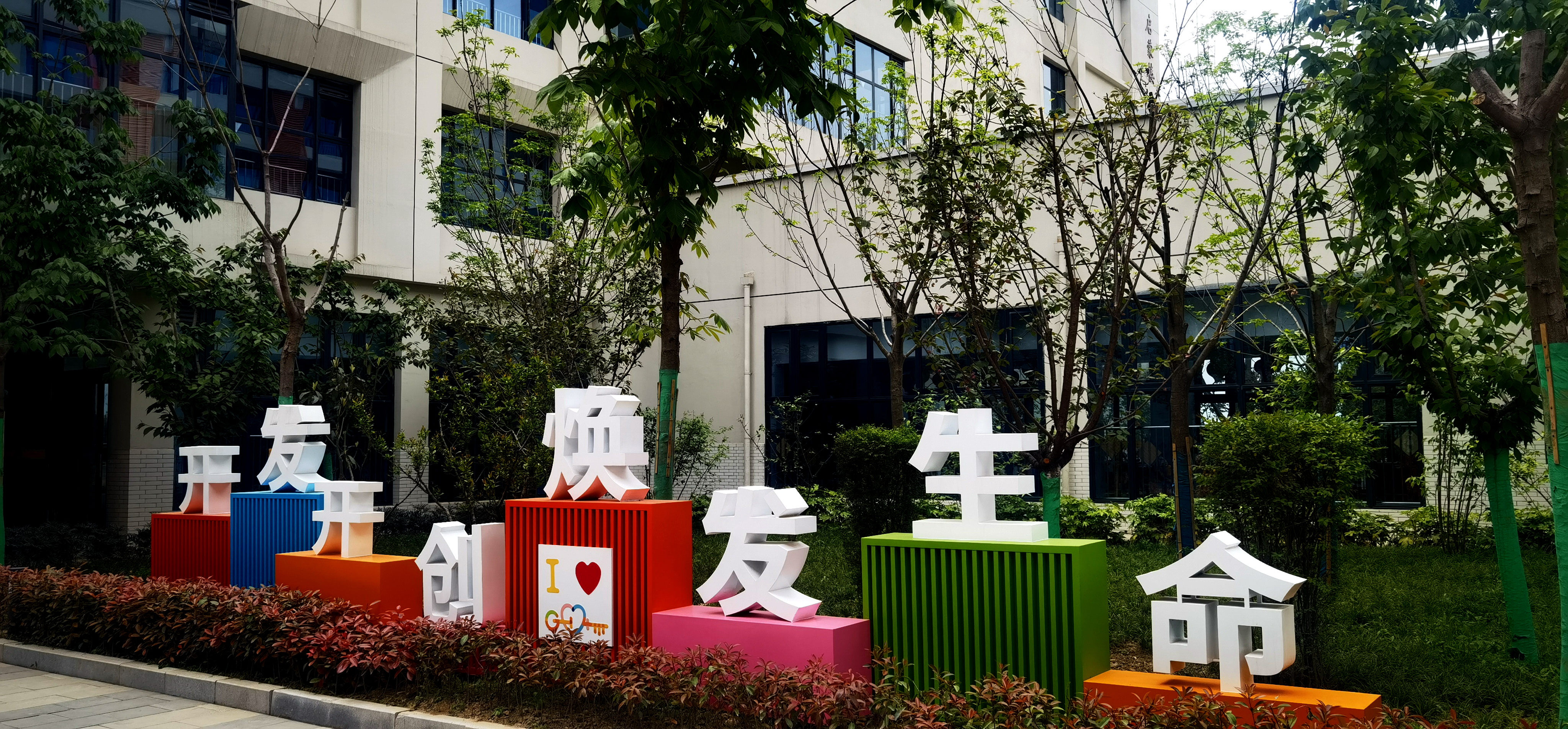 学校将绿色、美景引入校园,让师生徜徉“绿意”中、学游“美景”,呈现给师生充满自然生机、愉悦的学习氛围。绿化工作做到了平面绿化与垂直绿化相交,树木与花卉并存,盆栽与地栽互补,大片绿化与小景布置结合。绿地布局合理,乔木、灌木、花草配置得当,学校绿化覆盖率达到37%,校园将实现春有花、夏有荫、秋有实、冬有青,三季有果,四季常绿,构成了一幅赏心悦目的校园立体风景画!