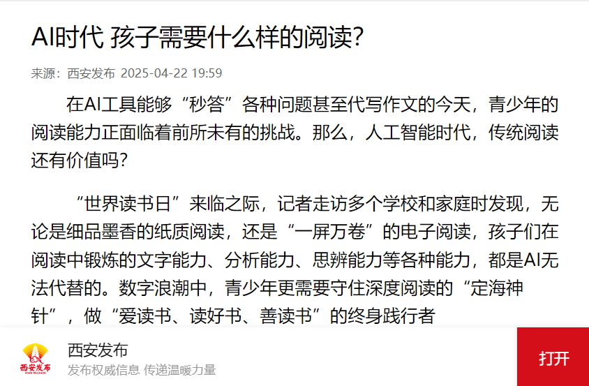 《时间裂缝救援》《关羽走麦城》《神笔马良》……这些充满童真的AI绘本正在校园里掀起一股“科技阅读”新风尚。